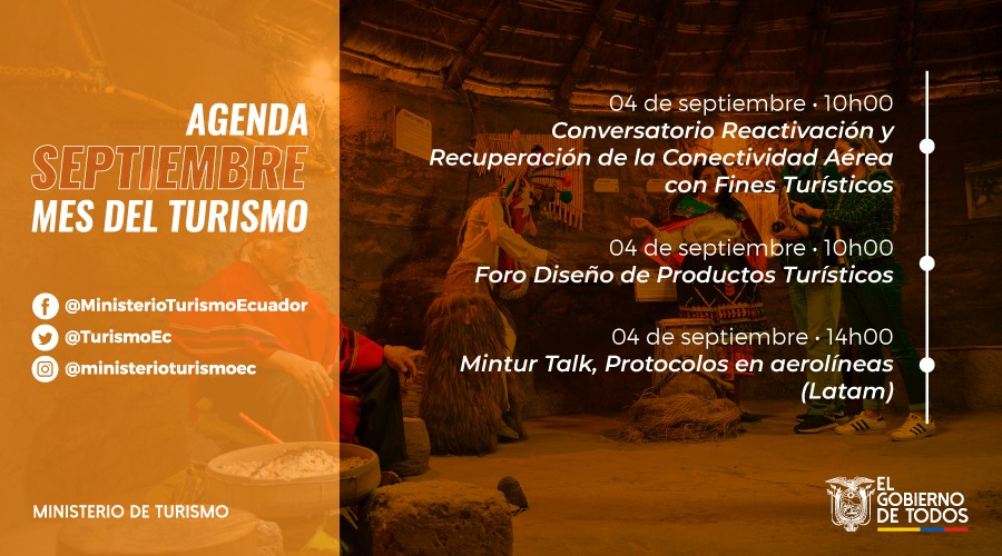 Para conocer más detalles de las actividades y eventos programados hasta el 30 de septiembre, visite www.turismo.gob.ec e infórmese en nuestras redes sociales institucionales.