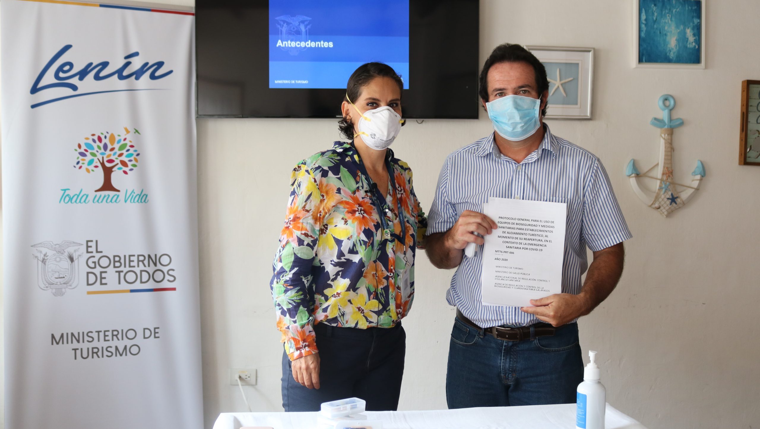 (Santa Cruz, Galápagos. 22.05.2020). El Protocolo de Bioseguridad y Medidas Sanitarias para Establecimientos de Alojamiento Turístico fue entregado esta mañana a propietarios y administradores de hostales y hoteles en la isla Santa Cruz de Galápagos.