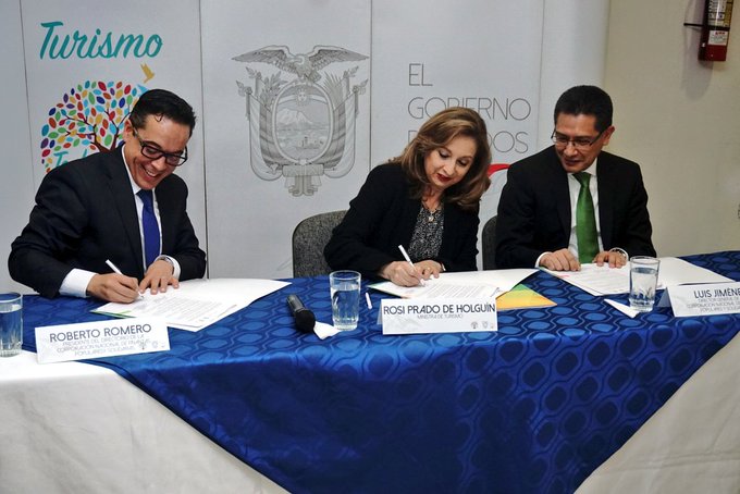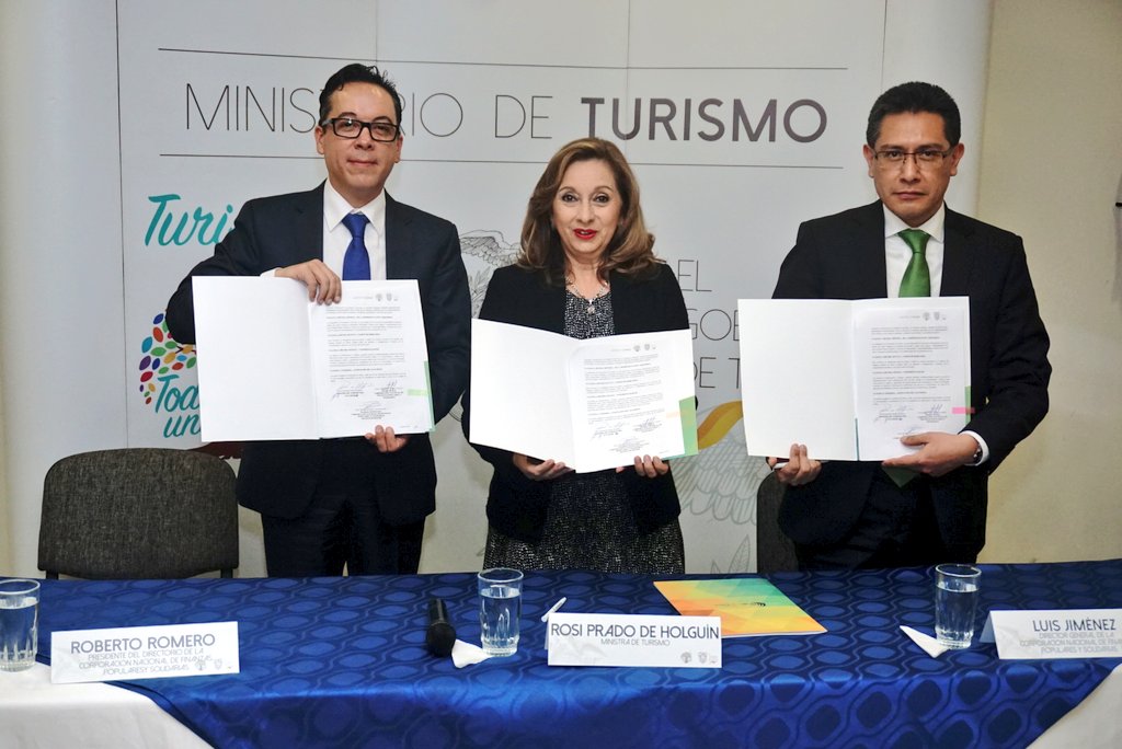 El convenio fue suscrito por la ministra de Turismo, Rosi Prado de Holguín, el presidente del directorio de la Corporación Nacional de Finanzas Populares y Solidarias, Roberto Romero y en calidad de Testigo de Honor, el director general de la CONAFIPS, Luis Jiménez.