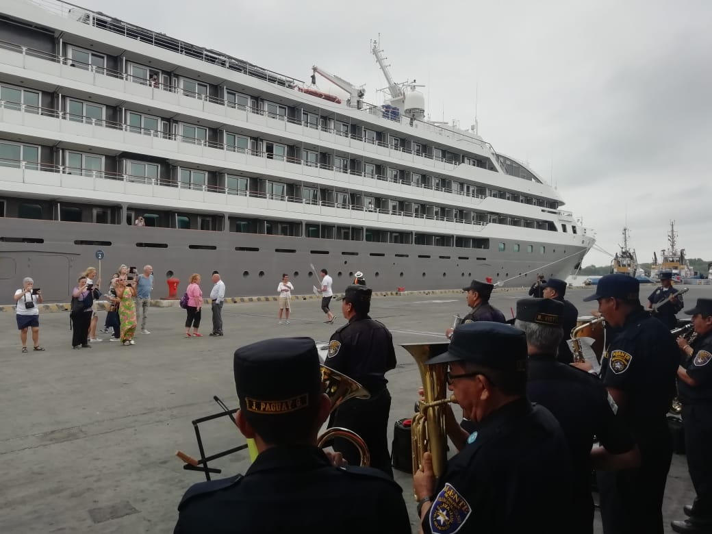 (Guayaquil, Guayas. 28-10-19)  Con música representativa de la ciudad y del país, a cargo de la Banda Municipal de Guayaquil, fueron recibidos los 170 pasajeros que llegaron la mañana de este lunes 28 de octubre a bordo del crucero L´Austral. La embarcación atracó en el puerto marítimo con turistas franceses, ávidos de conocer los atractivos y gastronomía de la urbe y del Ecuador.