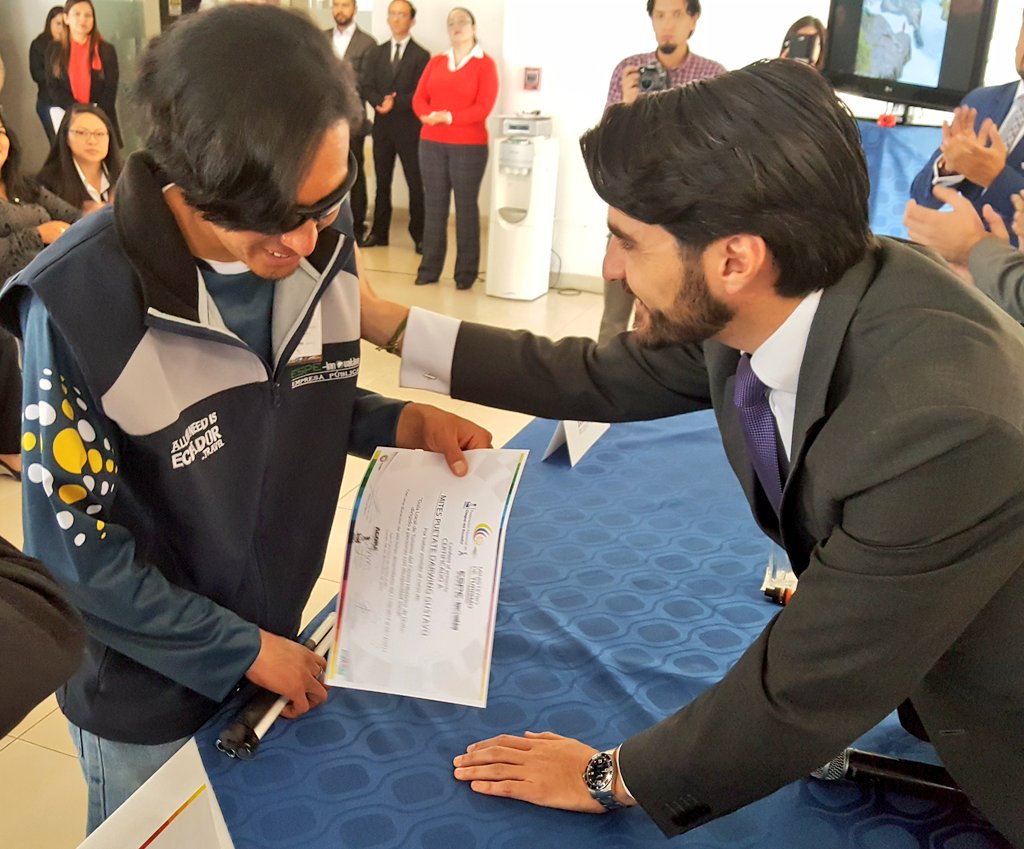 (Quito, Pichincha. 04-12-2017) Ecuador trabaja por un país inclusivo, ésta mañana 30 guías con discapacidad visual recibieron sus certificados por haber asistido al primer curso de capacitación de guías locales de turismo del Centro Histórico de Quito, que les permitirá realizar la actividad de guianza por lugares emblemáticos de la capital ecuatoriana.