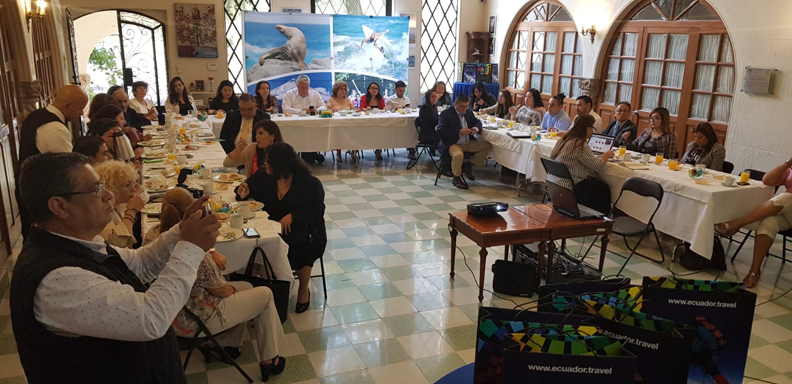 La presentación buscó generar lazos comerciales con los prestadores turísticos de este país. Las operadoras nacionales Gray Line, Galacruises y Pam Tours viajaron al destino para mantener reuniones B2B con los agentes comerciales de México. Además, los asistentes disfrutaron de un delicioso desayuno compuesto por quesadilla, llapingacho, empanada de verde, chocolates, frutas, jugo de naranjilla y té de hierbas del Ecuador, preparado por el restaurante La hueca con Sabor (ecuatoriano). También, se distribuyeron muestras de chocolate de Pakari y colágeno hidrolizado de DLIP SA.