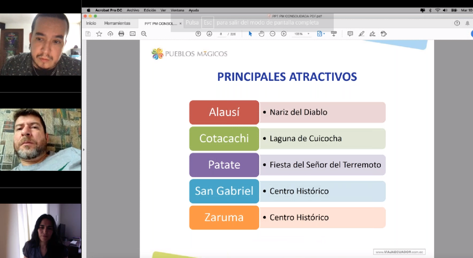 (Quito, Pichincha. 09-07-2020).– Dentro de las estrategias de reactivación de las localidades que forman parte del programa Pueblos Mágicos del Ecuador, el ministerio de Turismo desarrolló una jornada de capacitaciones sobre “Lineamientos de Comunicación y Promoción”.