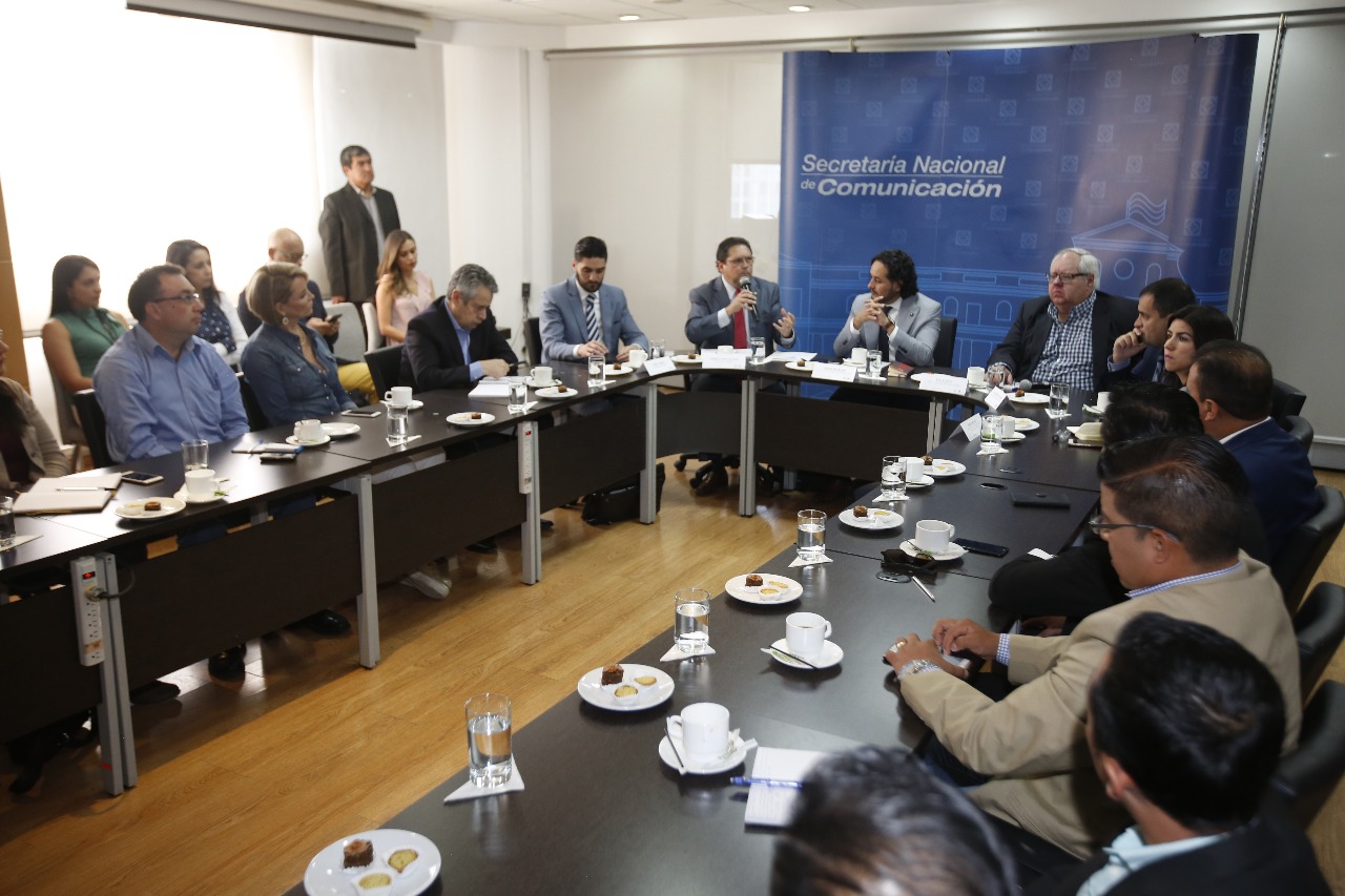 El taller contó con la participación del Secretario de Comunicación, Andrés Michelena, el Viceministro de Turismo, Carlos Larrea y representantes de los diferentes medios de comunicación del país.